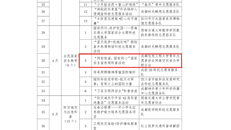 我院“网安筑盾,国安同心”活动成功入选2026年成都市主题科技志愿服务项目