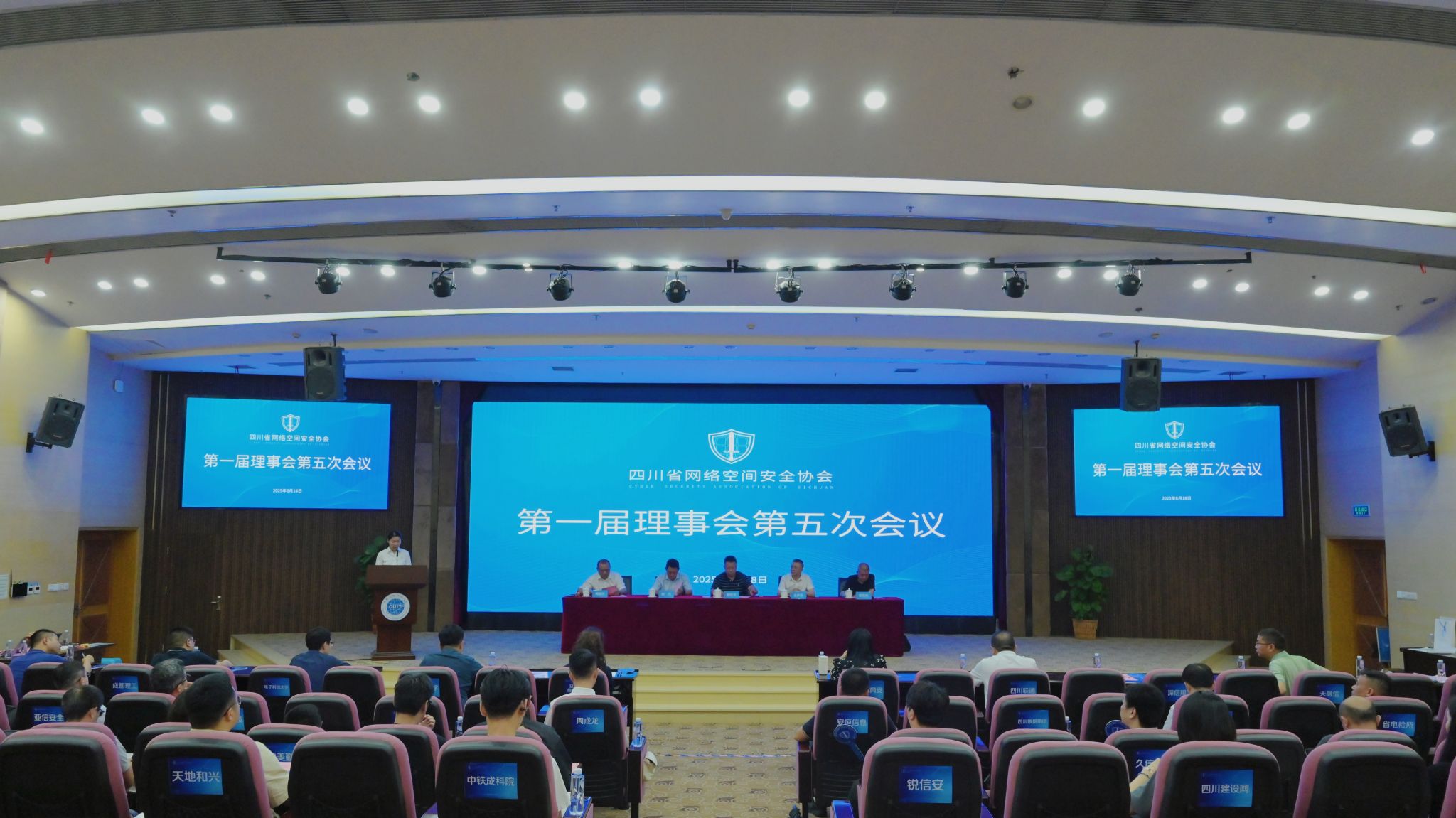2025年6月18日下午,四川省网络空间安全协会第一届理事会第五次会议在理事长单位成都信息工程大学顺利召开。协会理事长舒红平、四川省委网信办总工程师何力、协会党委书记王伊洛、协会监事郑洪烈、协会秘书长周益民、协会执行秘书长周成龙出席会议。新晋理事会代表及全体理事会成员代表参加会议。大会由协会秘书处彭春瑶主持。