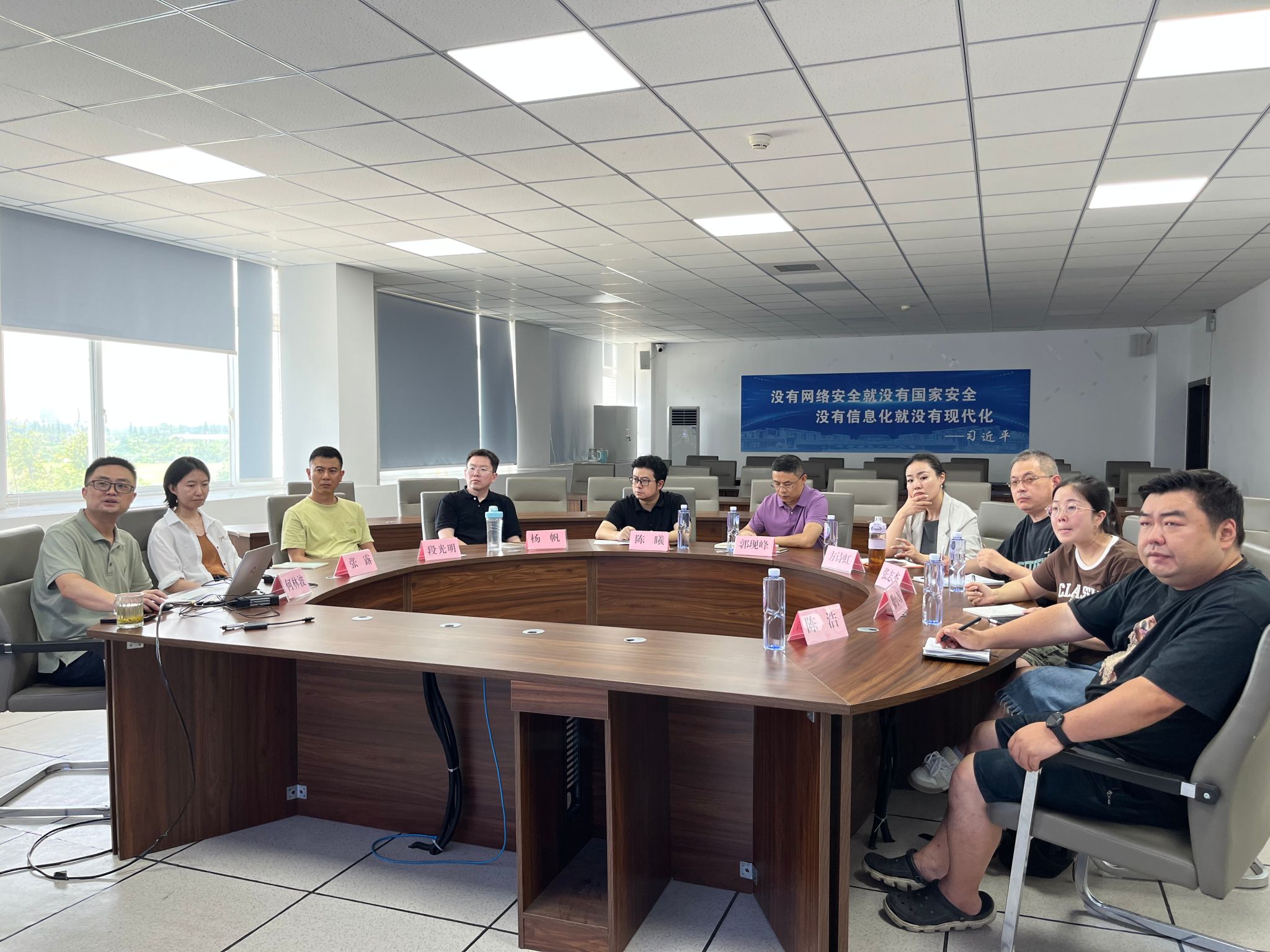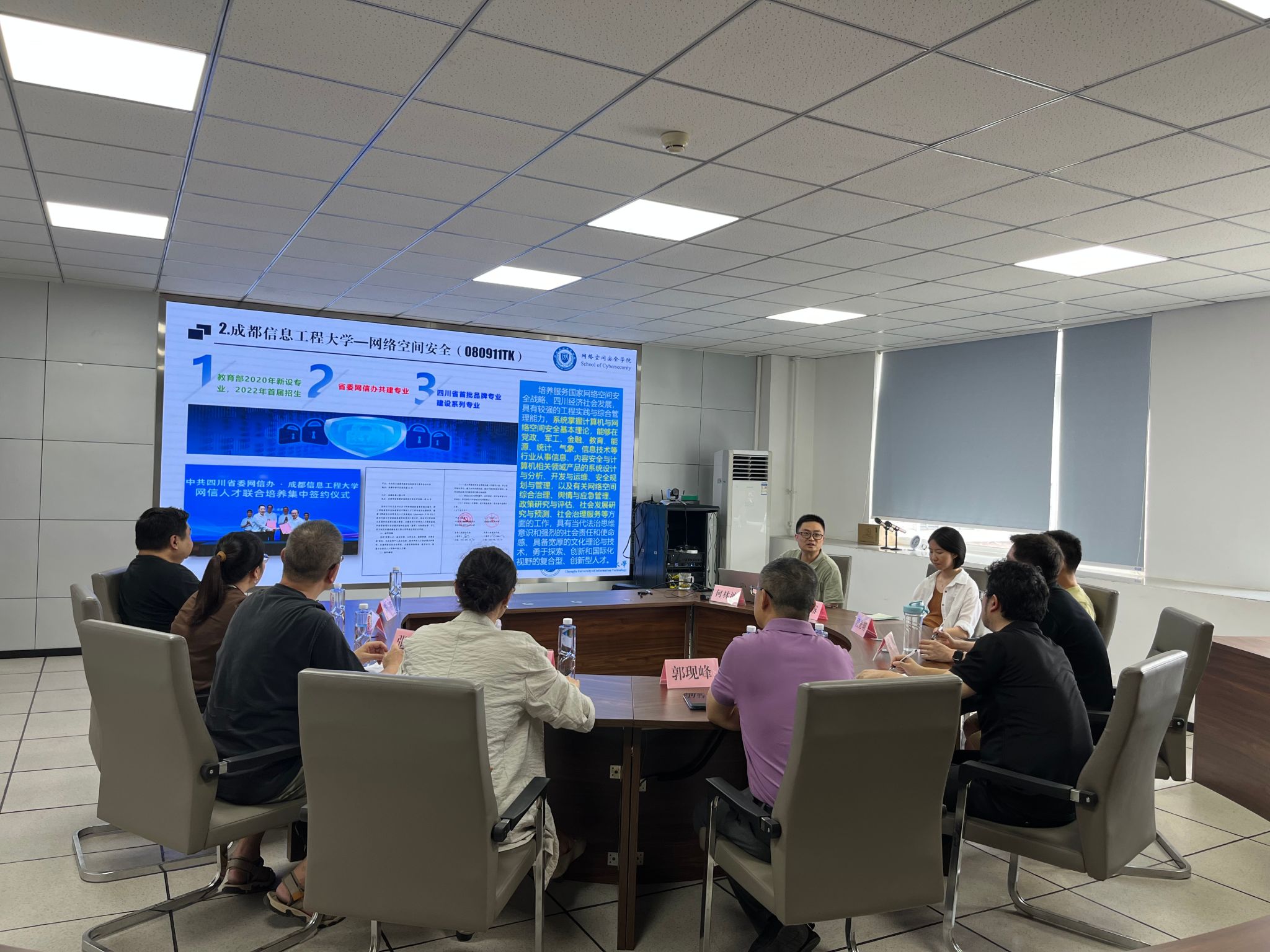 学院副院长何林波、信息安全系主任杨帆、学科竞赛中心主任段光明、网络空间安全系骨干教师张露博士参会。