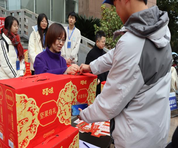 本次送温暖的礼物是一份寓意“坚定初心、坚持到底”的特制坚果礼盒和写有“颗颗坚果攒能量,步步稳扎向梦行”等励志寄语的卡片。这份以“坚”为核心的礼物,既是对同学们备考阶段“补充能量”的暖心关怀,也是对考研学子“坚持就有收获”的美好期许。同学们直言这份关怀让他们倍增信心、更添动力。