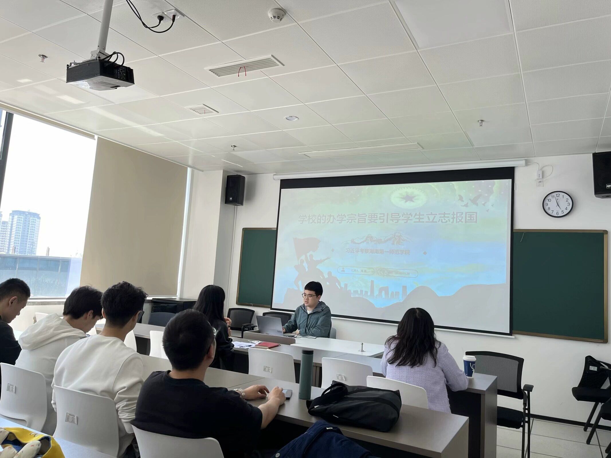 大会第二项,由杨浪同志带领大家学习了习近平同志考察湖南第一师范学院重要讲话。习近平总书记强调:国家要强大,必须办好教育。一师是开展爱国主义教育、传承红色基因的好地方,要把这一红色资源保护运用好。学校要立德树人,教师要当好大先生,不仅要注重提高学生知识文化素养,更要上好思政课,教育引导学生明德知耻,树牢社会主义核心价值观,立报国强国大志向,努力成为堪当强国建设、民族复兴大任的栋梁之才。