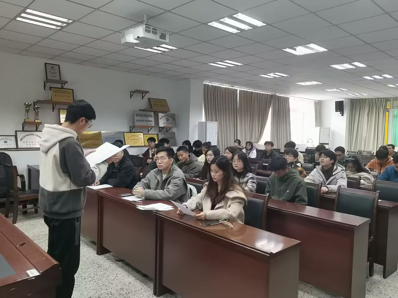 本次会议主要内容是对学生党支部2023年下半年拟发展的预备党员进行审查、表决。会议流程是:拟发展对象宣读《入党志愿书》,入党介绍人汇报拟发展对象在入党积极分子期间工作、生活、思想、学习等方面的表现情况,正式党员进行投票,学生党支部副书记马海峰宣读投票结果和党支部综合考察意见。