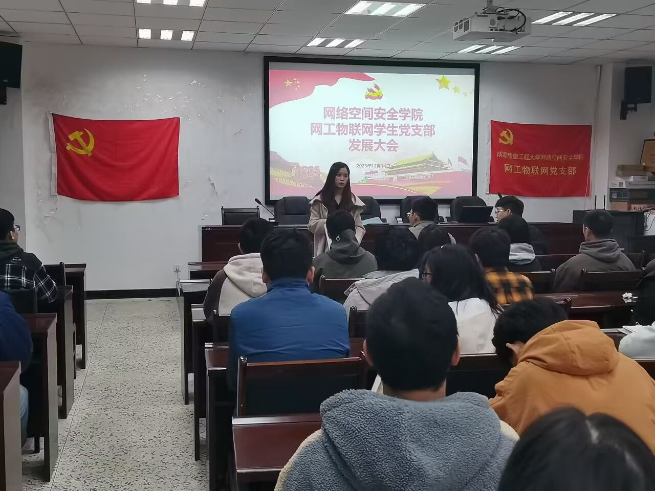 2023年12月14日10时,bw西汉姆联网工物联网学生党支部2023年秋季预备党员发展大会在双中心A402顺利召开。参加本次会议的有网工物联网学生党支部书记何佩遥、全体学生党员和15名发展对象。本次会议由党支部书记何佩遥主持。