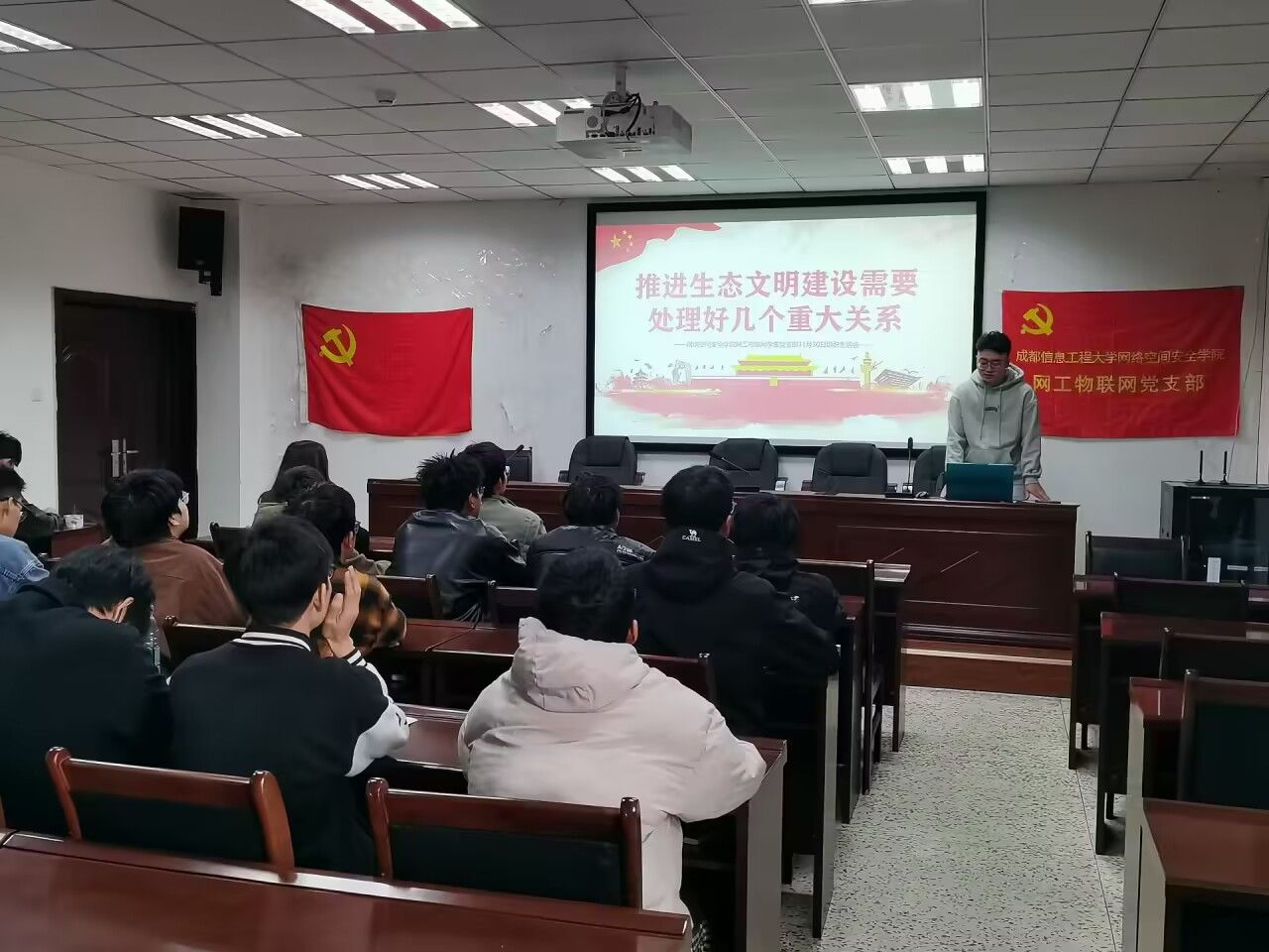 2023年11月30日下午bw西汉姆联网工物联网学生党支部在航空港校区双中心A402开展了十一月组织生活会,本次会议着重学习习近平总书记对推进生态文明建设需要处理的五个重大关系的重要指示。参加本次会议的有网工物联网学生党支部书记何佩遥和全体学生党员,会议由张奥东同学主持。