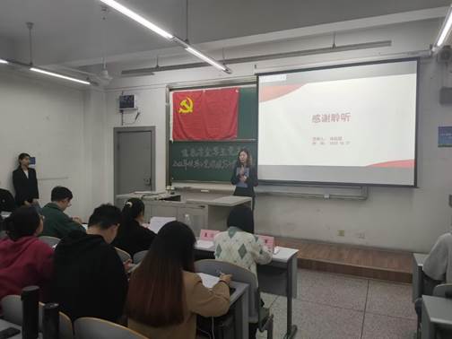 本次答辩采用3分钟自我阐述、现场提问的方式对入党积极分子进行考察。首先,各入党积极分子进行自我阐述,介绍自己的学生经历、对于党的认识以及入党动机等。自我阐述结束后,党员同志及培养联系人从党的基础理论知识、入党动机、国内外时事政治等方面对入党积极分子进行提问,考察其对于党的了解程度和思想态度等。在展示自我的过程中,各位入党积极分子都展现出了积极向上,充满自信的风采。在提问环节,对一些问题也表达了自己的见解和思考。