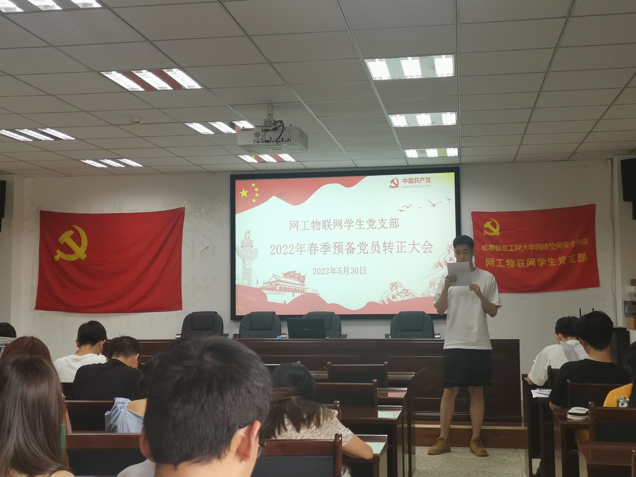 本次会议主要内容是对学生党支部2022年上半年拟转正的预备党员进行审查、表决。会议流程是:拟转正预备党员宣读《转正申请书》、汇报本人在预备