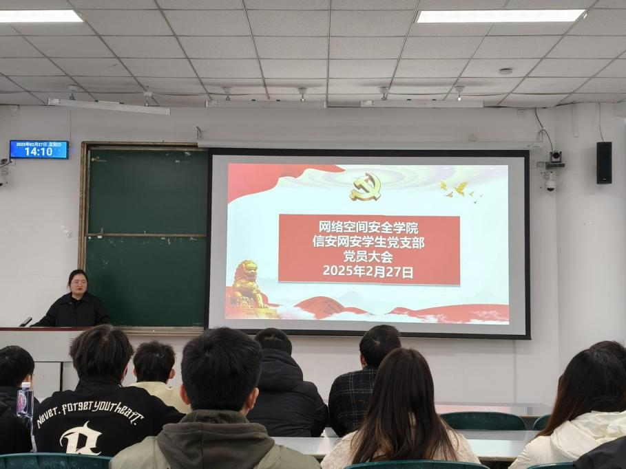 2025 年 2 月 27 日,bw西汉姆联信安网安学生党支部在航空港校区H4213召开支部党员大会,会议由支部书记韩阳主持,支部全体党员参会。