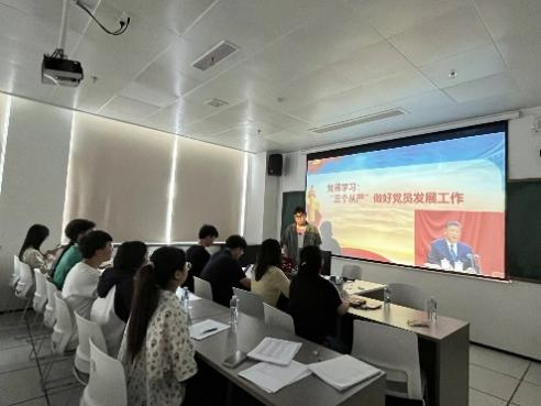 会议第一项,由路承信带领大家学习“三个从严”做好党员发展工作。坚持标准从严、程序从严、教育从严这“三个从严”,对于做好党员发展工作具有至关重要的意义。邬子悦同志表示经过学习,党员在思想、行动上要与时俱进,不断学习新知识、新技能,为党组织注入新活力。吴鸿晏同志表示“三个从严”使党员队伍始终保持先进性,紧跟时代步伐,适应社会发展需求,引领社会风尚。