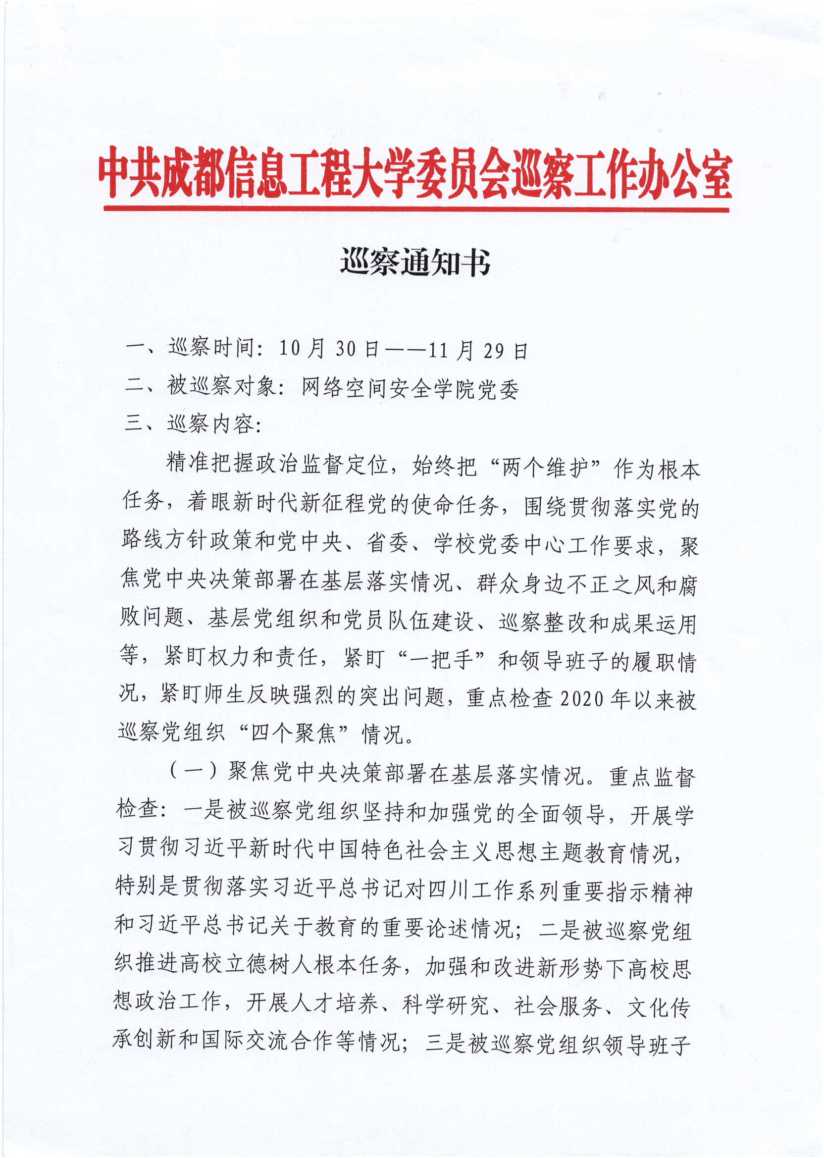 发布人:党委巡察工作办公室 审核人:党委巡察工作办公室 浏览次数: 发布时间:2024-10-31