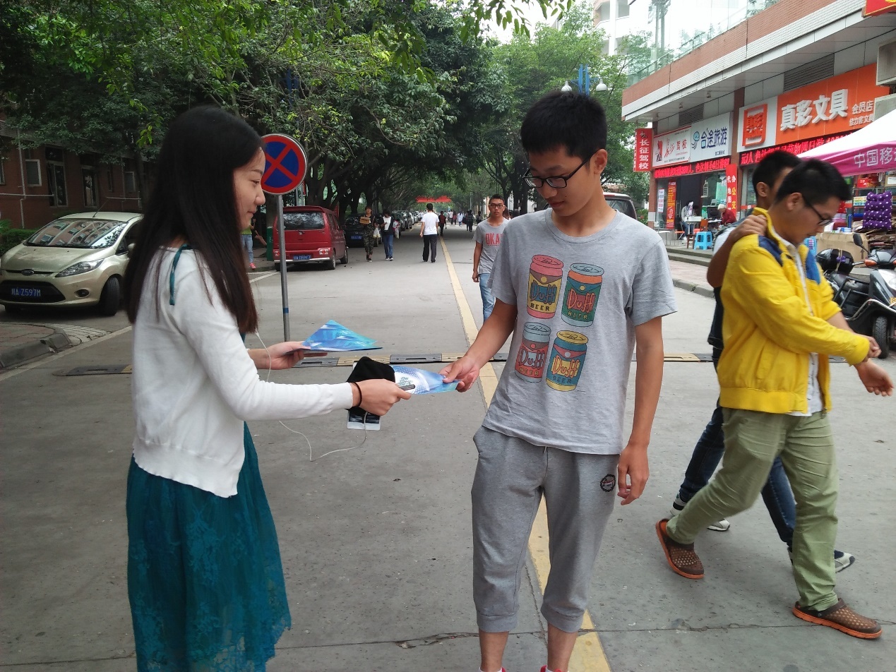 (2)学生会成员为同学们发放知识手册