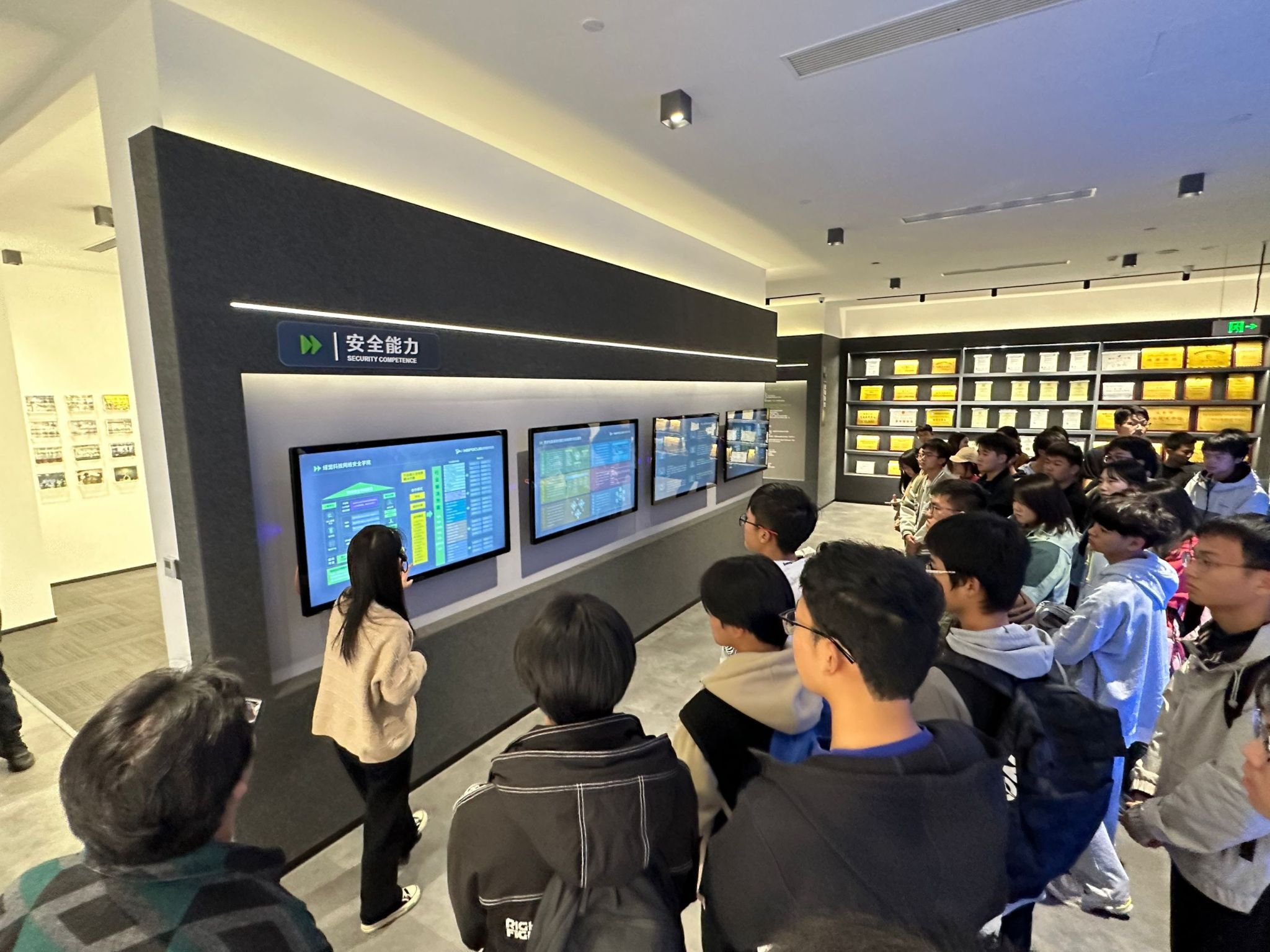 活动伊始,由绿盟科技公司讲解员带领同学们从展会大厅的品牌标志到公司荣誉奖项、公司分布、领导人物、产品展示、安全能力、国内外市场、企业文化等七个方面叙述了绿盟科技的发展历史,并介绍了企业的安全理念与优势、八大实验室、数字与硬件产品。最后,讲解员为同学们展示了各地方政府及公司写给绿盟公司的感谢信,每一封信都对绿盟公司在网络空间安全方面做出的贡献表达了感激之情。同学们也深深体会到了网络安全领域对社会的贡献是巨大的,这也更加坚定了同学们学好专业知识的决心。通过参观和讲解员讲解,加深了大家对网络安全行业行情的了解程度,为我校更好地培养高素质人才打下理论基础。