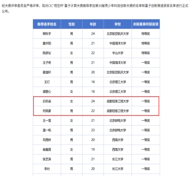 近日,由中国通信学会主办、中国通信学会量子计算专业委员会承办、本源量子计算科技(合肥)股份有限公司协办的第一届CIC“悟空杯”量子计算大赛圆满收官。bw西汉姆联(芯谷产业学院)先进密码与量子计算团队师生表现优异,荣获全国一等奖,两名研究生入选“优胜选手”并直通第39届全国青少年科技创新大赛。