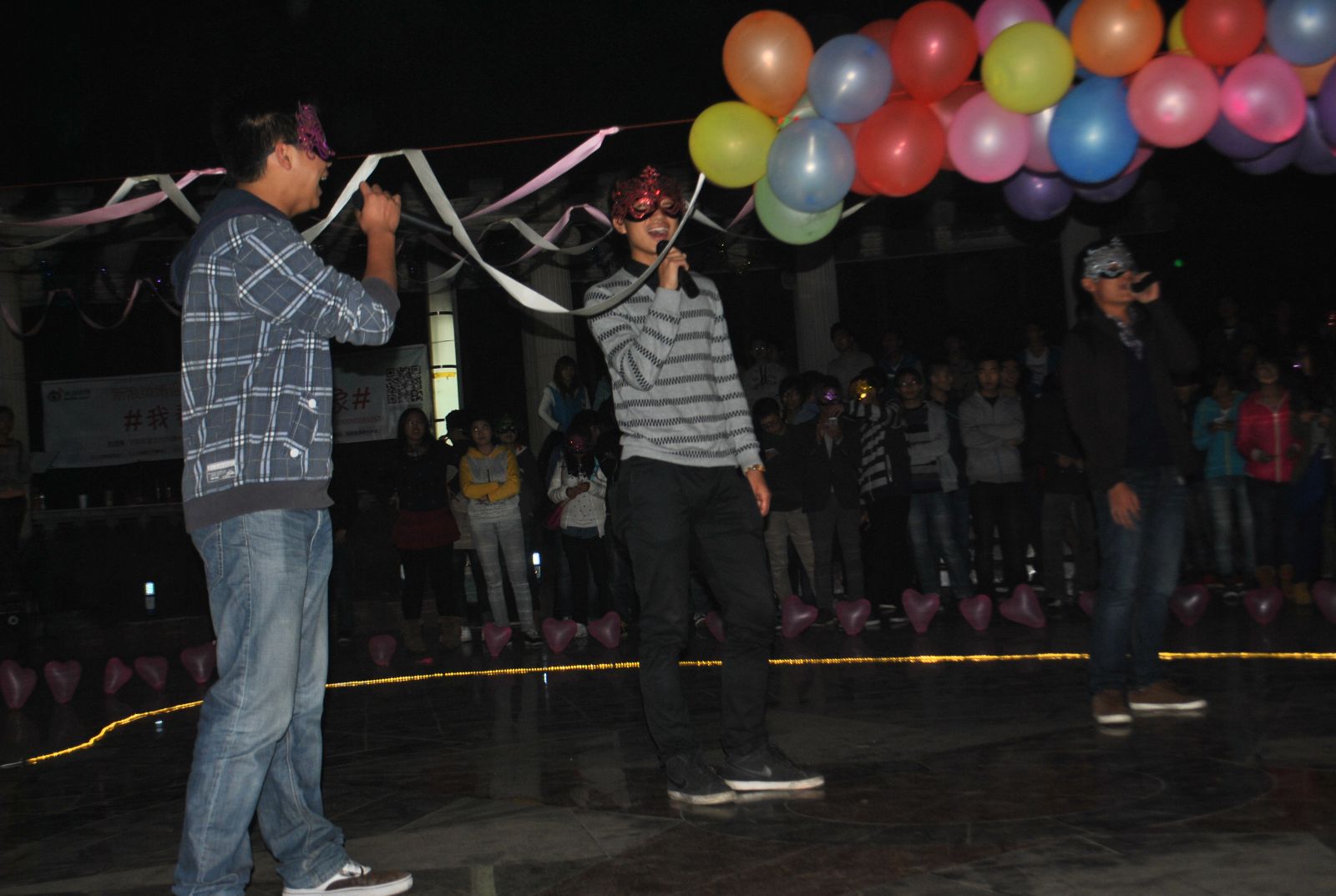 由八对带有面具的舞者带来的开场舞——《爱的华尔兹》,揭开了活动的序幕,其中也不乏有观众参与进来,紧接着是各学院选拔出的优秀人员进行表演,舞蹈、歌曲、乐器演奏应有尽有。但独乐乐不如众乐乐,活泼可爱的兔子舞更是活跃了气氛,让到场的同学不管相识与否都搭在一起跳了起来。微博墙在此时也不断刷新,三次抽奖都为获奖者送出了贴心的礼物。最终的告白环节,更是为活动增添了几分看点。在欢呼声中,持续了将近一个半小时的舞会圆满拉下帷幕。