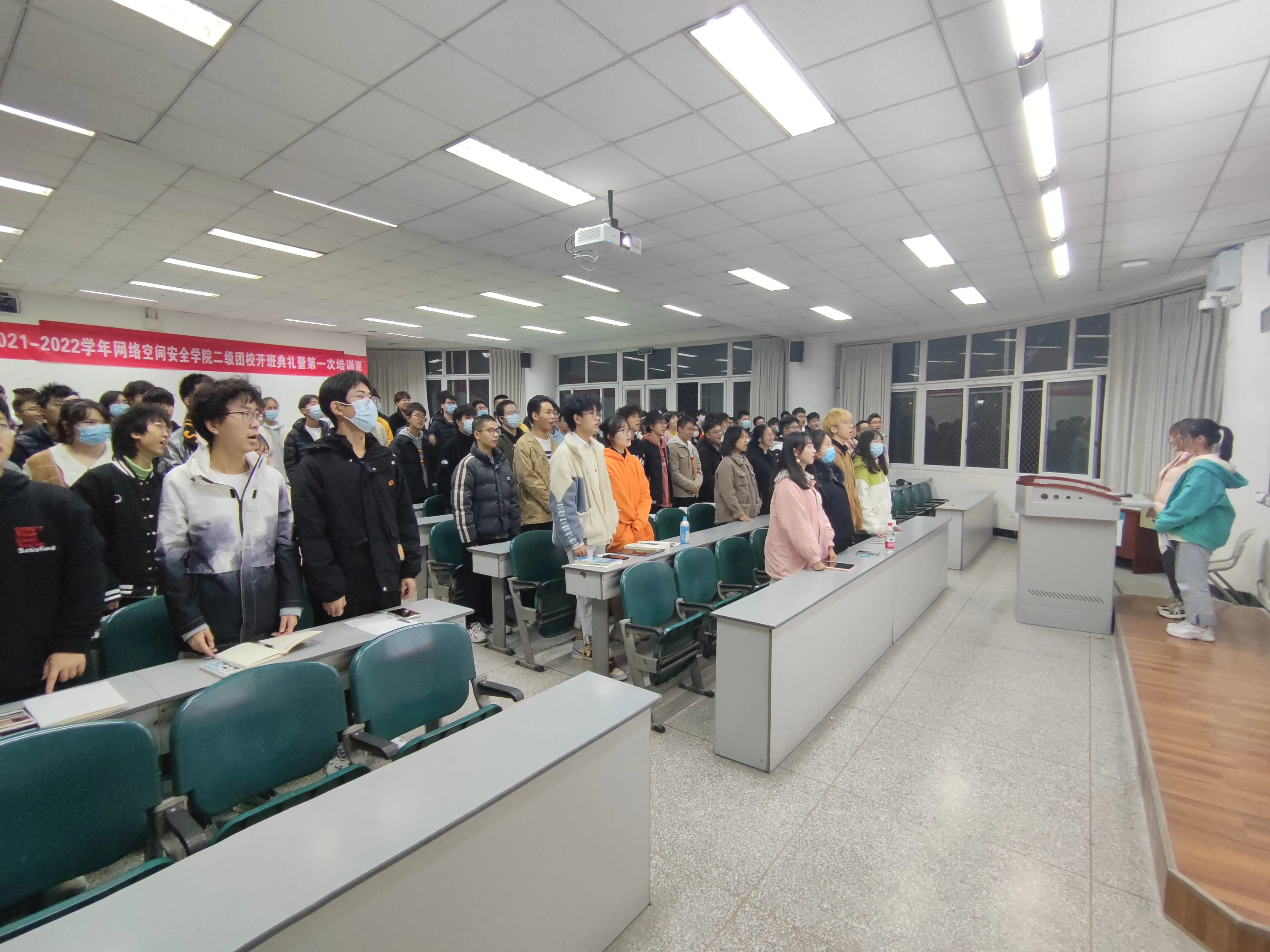 团校在庄严的中国共青团团歌中拉开帷幕,全体学员起立奏唱团歌,学员代表张钦青带领全体学员重温入团誓词后,bw西汉姆联团委学生会主席团成员蒋芸潞学姐为全体学员致培训开幕辞,而后组织部负责人谢姿宇学姐围绕“中国共产主义青年团知识讲解”的主题展开了第一次团课。