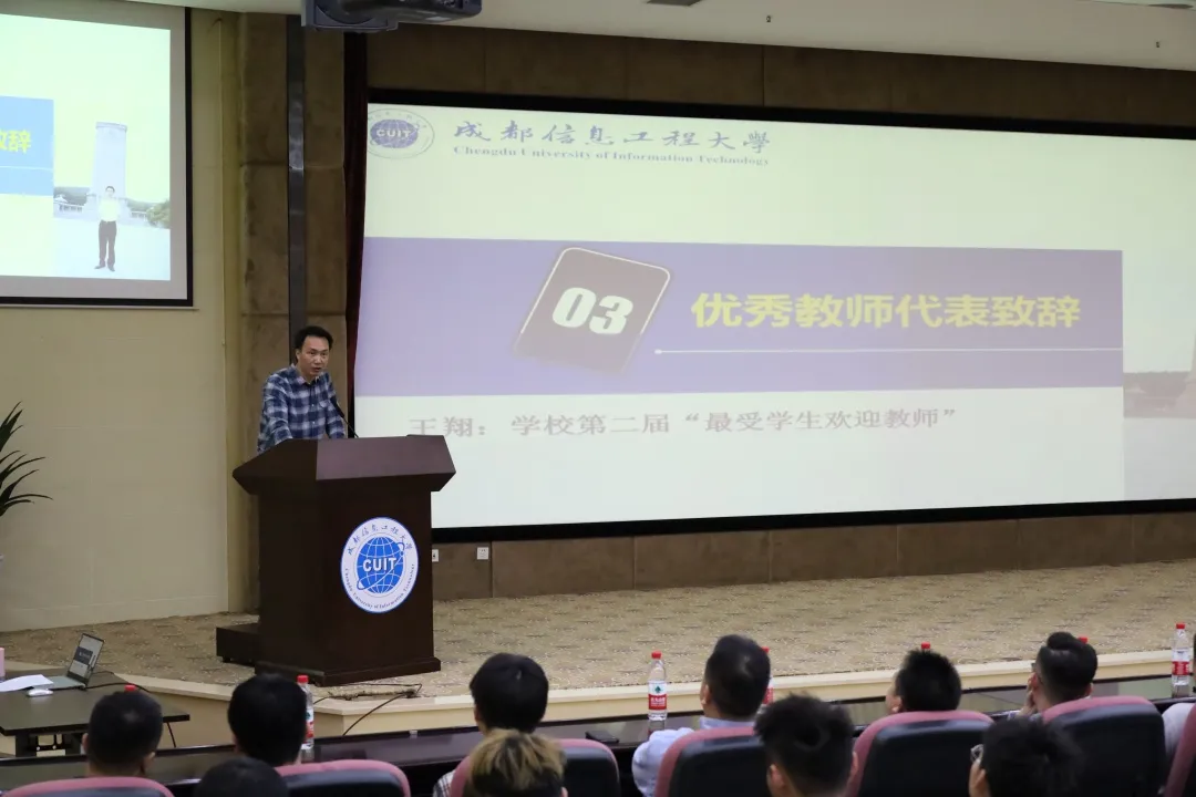 王翔作为优秀教师代表发言,王老师用他多年的教育教学和学生指导经验告诉新生们,凡事“预则立,不预则废”,做好规划是影响大学生活质量的关键。