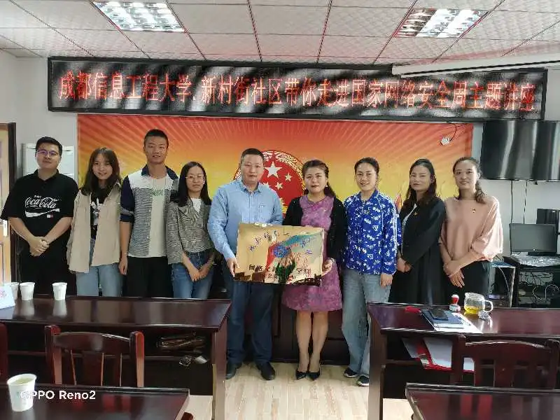 在授牌仪式上林细俤讲到:“当前网络空间迅猛拓展、信息技术广泛应用,深刻改变着人们的生产生活方式,但网络空间不是“法外之地”,网络安全事关国家安全,事关每个网民的切身利益,近年来网络诈骗手段层出不穷,对我们老百姓的财产安全构成了威胁,希望通过我们和乐山市新街村社区的合作,我们的学生能用所学知识让市民们更懂网络、知安全,切实加强数据安全和个人信息的保护。同时通过新村街社区为同学们提供实习实践岗位,加强同学们的社会实践能力,促进他们的全面发展。”