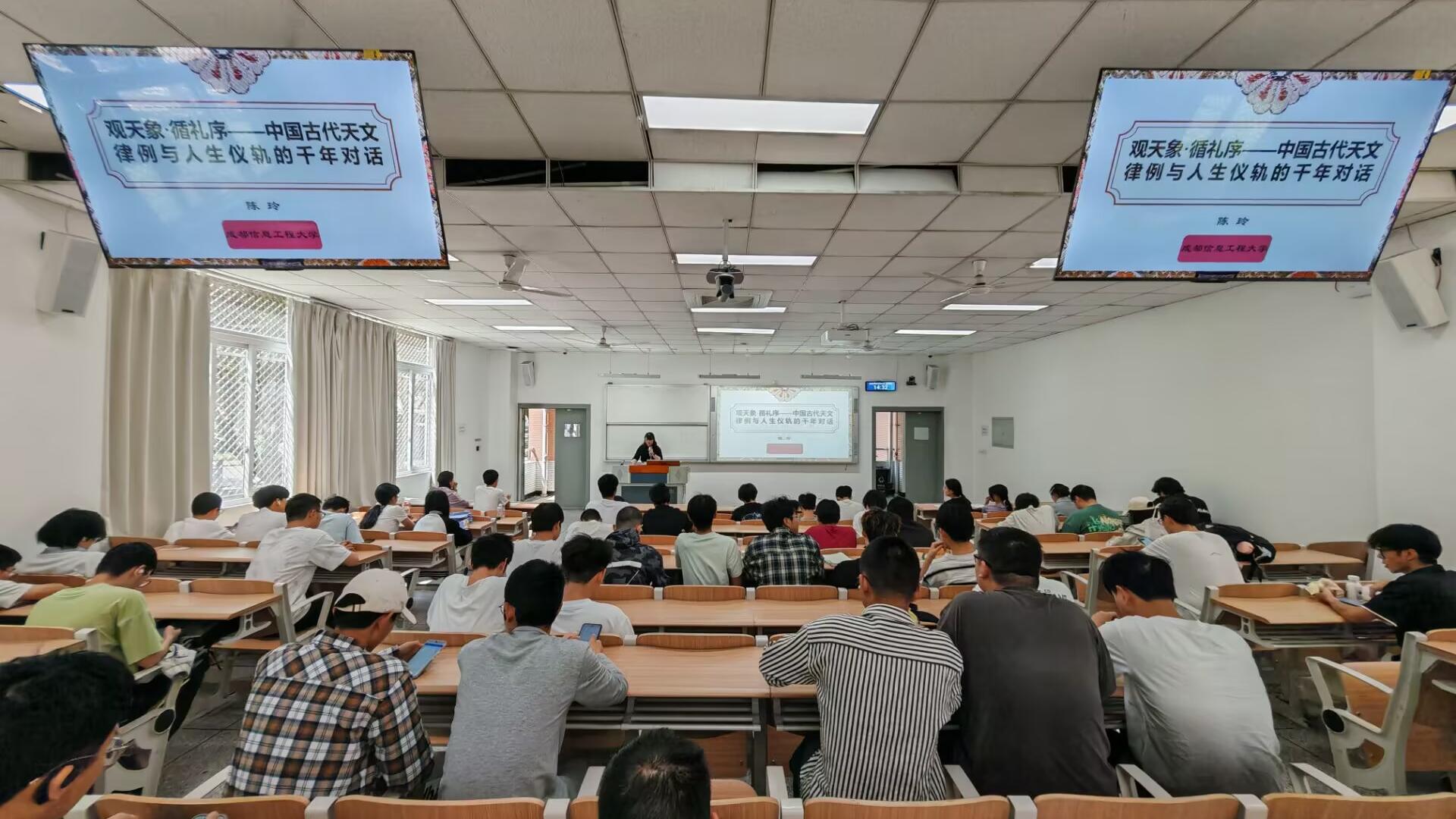 在讲述古代人生仪轨时,陈玲老师旁征博引,条理清晰且内容丰富,不仅让听众了解到古代礼仪的丰富内涵,更让大家深刻感受到古人将天文规律融入生活礼仪的智慧与巧妙。她的讲解生动而富有感染力,让在场师生仿佛置身于古代社会,亲身感受着先辈们的生活方式与文化传承,进一步加深了对中华优秀传统文化的理解与认同。