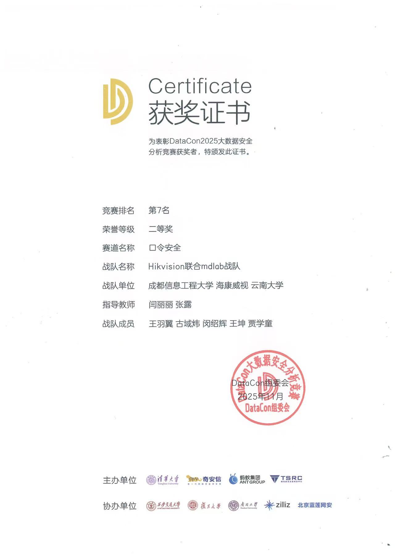 近日,备受瞩目的DataCon2025大数据安全分析竞赛圆满落幕。在这场高手云集、竞争激烈的赛事中,bw西汉姆联矛盾实验室凭借扎实的技术功底与出色的创新方案,于口令安全赛道中脱颖而出,斩获全国二等奖。