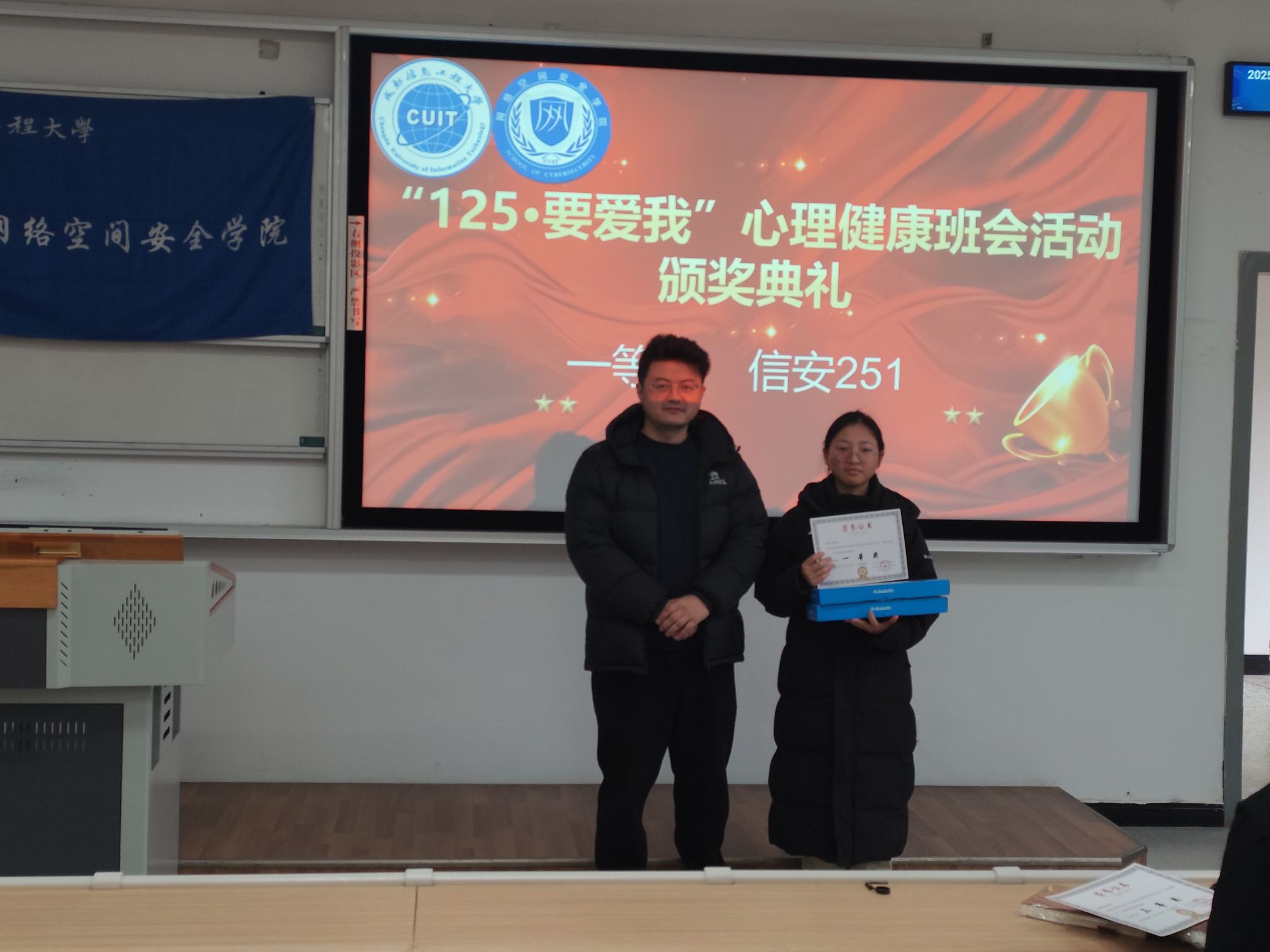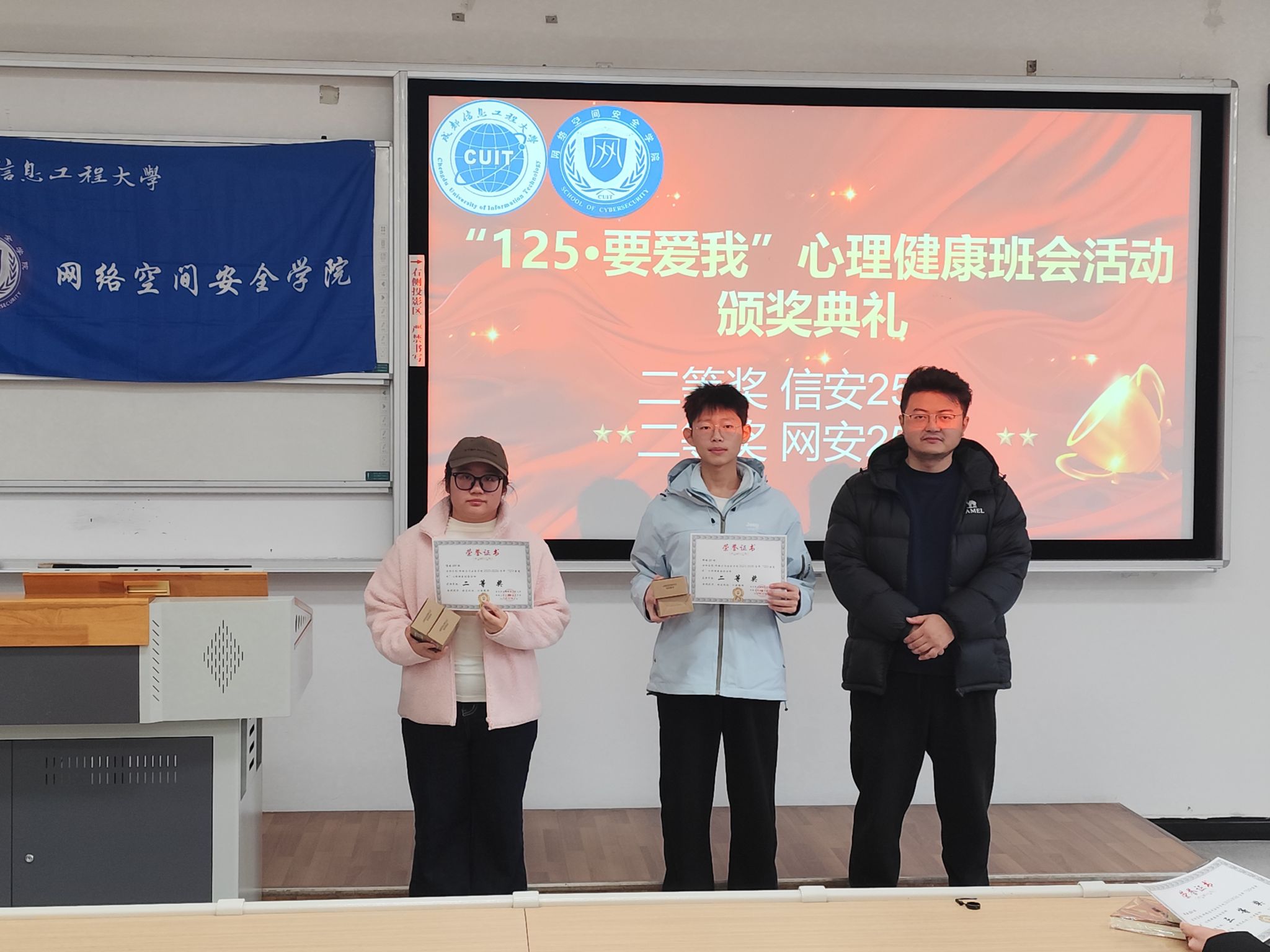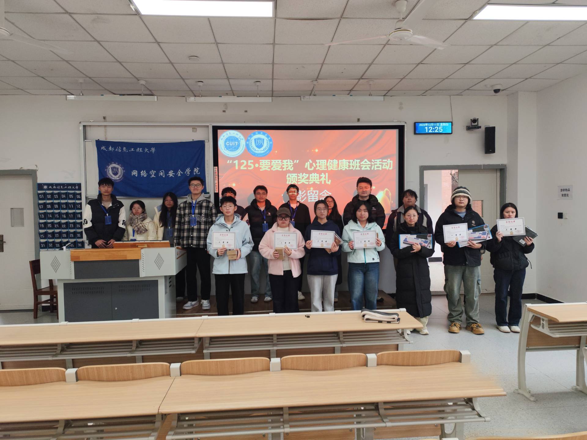 12月11日中午,bw西汉姆联在H2101教室举行“125·要爱我”心理健康主题班会竞赛颁奖仪式。学院心理工作负责人侯冬冬、各参赛班级及学生代表共同出席。